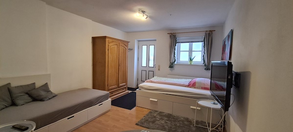 Unsere Apartments Sehr schönes Apartment ca. 25m², für 1 -3 Personen, einem Doppelbett 1,4m einem und Einzelbett, einer kleinen Küche sowie einer großen Sitzgelegenheit, TV und WLAN. Eigenes Bad. Sehr schönes Apartment ca. 35m² für 2 -4 Personen, mit zwei getrennten Schlafzimmer Zimmer integrierter Küche und Bad. Jedes Zimmer verfügt über eine Sitzgelegenheit sowie ein Doppelbett 1,4 m. Jedes Zimmer verfügt über ein TV-Gerät und WLAN. Sehr schönes Zimmer ca. 20m² für 1 -2 Personen, mit einem Doppelbett 1,4m, Sitzgelegenheit, TV, WLAN und eigenem Bad. Die Küche ist zur Mitbenutzung. Parkplätze & Internet Parkplätze sowie eine W-LAN Internetverbindung stellen wir unseren Gästen selbstverständlich kostenfrei zur Verfügung. Freizeitmöglichkeiten & Wissenswertes Die nahegelegene ![]() ![]() Informieren Sie sich gleich hier über das Angebot des Münchner Verkehrsverbund ![]()